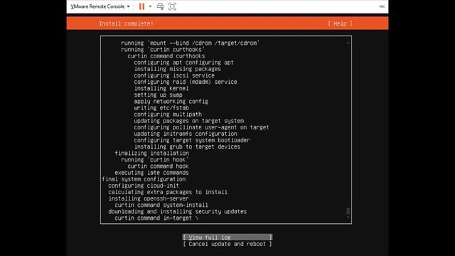 Монтируем ISO образ с Ubuntu Server 20 к виртуальной машине VMware с помощью консоли VMRC и погнали. Полная установка Ubuntu Server 20.04.3 LTS.