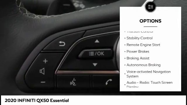 2020 INFINITI QX50 Essential http://roswellINFINITI.com For more information on this vehicle and our full inventory, call us at 770-625-8500 Roswell INFINITI of North Atlanta 11405 Alpharetta Hwy Roswell GA 30076 Essential. Pro Assist Package, Convenience Package, Welcome Lighting, Cargo Package, Illuminated Kick Plates, Splash Guards.