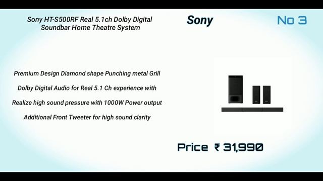 Top 5 Sony Soundbar Dolby Atmos | Best 5 Dolby Digital Sony Soundbar | in India Best Buy Links 1. Sony HT-Z9F : https://amzn.to/2HgY3yY 2. Sony HT-G700 : https://amzn.to/2UHY9m4 3. Sony HT-S500RF : https://amzn.to/3lHKrvG 4. Sony HT-RT40 : https://amzn.to/390JB9T 5. Sony RT3 : https://amzn.to/3kKJ51E Support me if you are new in channel and Give Big Like For More Videos Like This TIMESTAMPS 00:00 Intro 00:03 Sony RT3 Home Theater System 00:26 Sony HT-RT40 Real 5.1ch Dolby Digital 00:48 Sony HT-S500RF Real 5.1ch Dolby Digital 01:11 Sony HT-G700 3.1-Channel 01:33 Sony HT-Z9F Cinematic 3.1Ch Soundbar DETAILS 1. Sony HT-Z9F Cinematic 3.1Ch Soundbar Dolby Atmos and High Res Sound (Wireless Subwoofer, Bluetooth Connectivity,Built-in Wi-Fi) The HT-Z9F 5.1ch* Dolby Atmos /DTS:X Sound bar's new Vertical Surround Engine places you in the middle of the action. Hear sound from all directions with max 7.1.2 surround sound Vertical Surround Engine, our latest surround technology lets you enjoy the thrill of the latest cinema audio formats like Dolby Atmos and DTS:X in a single slim unit. Wirelessly connect to online music streaming with built-in Wi-Fi and Stream music wirelessly with Bluetooth technology. *With Optional 100w surround speakers, SA-Z9R Speakers Maximum Output Power 400 Watts 2. Sony HT-G700 3.1-Channel Dolby Atmos and DTS:X Soundbar with Wireless Subwoofer Vertical Surround Engine Sony’s latest surround technology – lets you enjoy the thrill of Dolby Atmos from a single slim unit. Centre Speaker for crystal clear dialogue. Wireless subwoofer A powerful wireless subwoofer delivers a deeper, richer bass sound—and with simple wireless connection, where you place it is up to you You can enjoy everything you watch in maximum 7.1.2ch sound Immerse yourself in TV and movies with powerful, dynamic surround sound. Stylish and easy to use, this is an HT-G700 3.1-Channel Dolby Atmos and DTS:X Soundbar and Wireless Subwoofer from Sony. Speakers Maximum Output Power 400 Watts 3. Sony HT-S500RF Real 5.1ch Dolby Digital Soundbar Home Theatre System Premium Design Diamond shape Punching metal Grill Dolby Digital Audio for Real 5.1 Ch experience with Realize high sound pressure with 1000W Power output Additional Front Tweeter for high sound clarity Powerful Bass with 18 cm big Subwoofer Designed for India, Tuned for India Wired rear speakers and an external subwoofer Multi connectivity options - Bluetooth, USB , HDMI ARC & Optical In 4. Sony HT-RT40 Real 5.1ch Dolby Digital Tall boy Soundbar Home Theatre System One touch wireless listening with NFC and Bluetooth Sound Bar Type 5.1 ch Tall Boy Home Theatre HT-RT40 comes with total power output and 5.1 ch real cinematic surround sound effect. Music center app compatibility, Power Consumption: 85 W ; Power Requirement: AC 220 - 240V, 50/60 Hz HDMI ARC (Audio Return Channel) lets you connect to your TV with a single cable, for easier control and fewer cables. Carry your favorite music in USB or in your Smartphone. 5.1 Channel Dolby Digital Surround Sound 600 W Total Power Output 5. Sony RT3 Home Theater System with Dolby 600 W Bluetooth Soundbar (Black, 5.1 Channel) High-quality surround sound with Dolby Digital Simplify your Set-Up with HDMI ARC Output The HDMI ARC (Audio Return Channel) means audio is also carried back to your sound bar from compatible TVs, without the need for an extra audio cable. Easy Bluetooth connectivity with NFC one-touch wireless audio streaming USB Port Enjoy a stable connection for smartphones, tablets Dolby Digital Enjoy dramatic, high-quality surround sound from 5.1 separate audio channels with Dolby Digital. 600 W Total Power Output 1 Year of warranty Please comment what type of video you want next 1. Best Water Purifiers 2. Best Home Theater Systems 3. Best Amplifiers 4. Top 10 wireless bluetooth speakers 5. Top 10 Best Smartphone 6. Top Best Products Review Unboxing 7. Best Gaming Gadgets Follow Youtube : https://www.youtube.com/techvells Twitter : https://www.twitter.com/techvells Facebook : https://www.facebook.com/techvells Instagram : https://www.instagram.com/techvells #techvells #top5 #top10best
