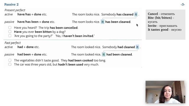 Passive Voice в английском языке. Занятие построено по мировому бестселлеру английской грамматики - English Grammar in Use Raymond Murphy Intermediate. Пройдя этот курс, вы можете успешно освоить всю грамматику английского языка! ✅ Нужна консультация по изучению языка или помощь со сложными темами? https://yourenglishtime.online/sessions ✉️ emails@yourenglishtime.online ⭐ Онлайн-курс Как избавиться от языкового барьера? https://yourenglishtime.online/coursepage ----- Если мои видео для вас полезны, вы можете поддержать мой канал: PayPal: http://paypal.me/AygulZakirova Yandex Деньги: https://money.yandex.ru/to/4100110669981535 ----- VK: https://vk.com/yourenglishtime