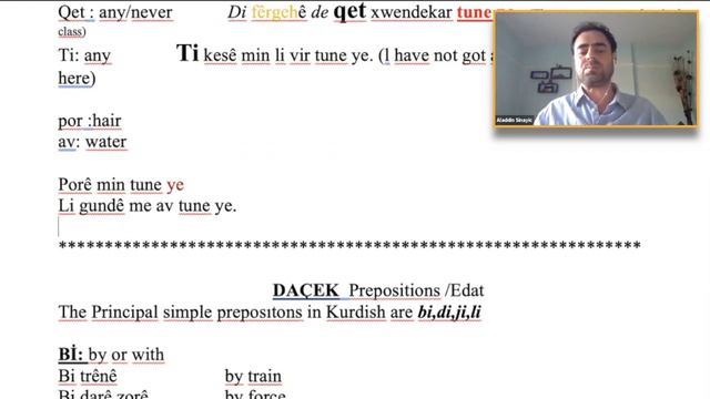 Recording of Online Kurdish Lesson via Zoom Hejmar /Numbers Heye-Hene /There is/are /have got, has got Malbat /Family Daçek /Prepositions