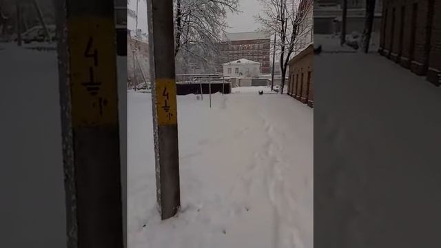 Мальтийская балонка Белка играет в снегу