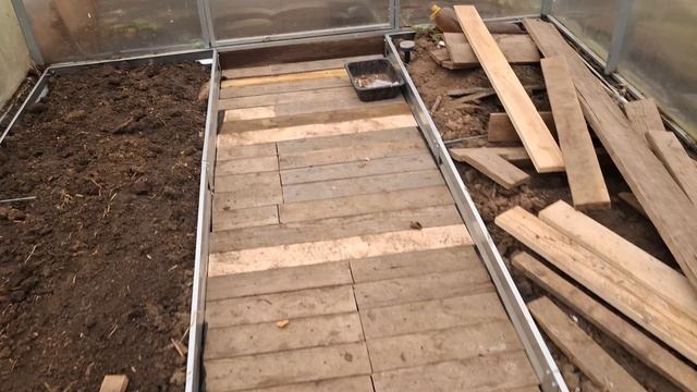 Полы готовы в теплице и коридоре. Гаска изучает пристройку.