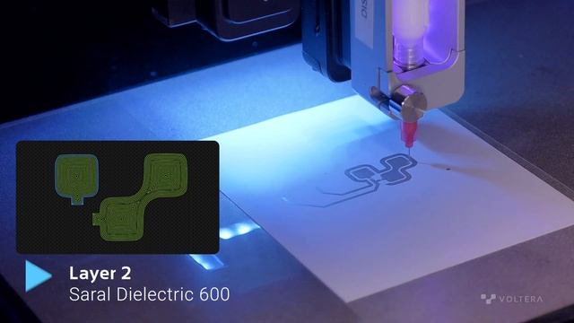In this NOVA print video, we're using Saralon's electroluminescent ink suite to create a version of our logo that, when connected to power, causes the light emitting materials to glow. Take a look at how this entire process was accomplished in just under three hours. Potential electroluminescent applications include high-visibility safety clothing, or automobile displays. Please note, the multi-layer function for NOVA is currently under development. To be notified when multi-layer launches later this year, please sign up here: https://share.hsforms.com/1q7Z-Skj4SG-8qM1V6cCzrQ34u2a Want to learn more about NOVA and its applications? Visit: https://www.voltera.io/nova Materials used: Saral Silver 700: https://www.saralon.com/en/inks/electrically-conductive-inks:silver-based-ink:saral-silver-700/ Saral Dielectric 600: https://www.saralon.com/en/inks/dielectric-inks:saral-dielectric-600/ Saral BluePhosphorL 800: https://www.saralon.com/en/inks/electroluminescent-inks:solvent-based-ink:saral-bluephosphorl-800/ Saral Conducting Polymer 700: https://www.saralon.com/en/inks/electrically-conductive-inks:polymer-based-ink:saral-conductingpolymer-700/ 0:00 – Intro 0:27 – Saral Silver 700 1:00 – Saral Dielectric 600 1:09 – Saral BluePhosphorL 1:17 – Saral Conducting Polymer 700 1:29 – Finished print 1:50 – Connecting to power