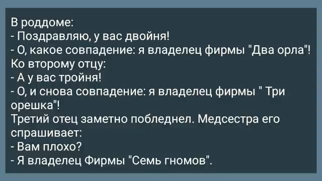 Дорогие друзья! Рады приветствовать вас на нашем канале! Если вам понравились анекдоты, подпишитесь на канал и нажмите на колокольчик, что бы не пропустить новые выпуски анекдотов. Оставляйте комментарии, присылайте свои анекдоты , и в ближайших выпусках вы их услышите. Ставьте лайки и делитесь этим видео со своими друзьями! Всем добра, здоровья и хорошего настроения!