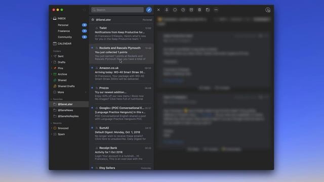Email apps galore. With the fall of Astro last week and Google Inbox making its exit. What email apps have I taken time to look at?! Spark Mail has been a tool that I've been using for around 2 months now. Combining this with Sanebox, a popular email management tool for reducing clutter. In today's video, we explore these two tools and my favourite features. Spark Mail is on iOS and Mac and available here: https://sparkmailapp.com/ Sanebox is available for most email clients and plugs into any 3rd party app with no issues. I'm doing a review on them in November and a host of videos about how to get started. You can get $10 free on Sanebox now: https://sanebox.grsm.io/6umkc3f4sejn* * We are an affiliate to Sanebox ▶ GET 2 MONTHS FREE SKILLSHARE with all classes Our latest Things 3 class: https://skl.sh/2wadCie ▶ DEALS/OFFERS for the productivity apps and tools New added weekly: https://bit.ly/2PtZfym ▶ DISCOVER MORE ? Subscribe on iTunes: https://apple.co/2EIyEsi ? Join the Facebook Group: http://bit.ly/2k9Pn0P ? The monthly newsletter: http://eepurl.com/dtxtn1 ? Get 2-months free Skillshare: http://skl.sh/2CT4mk ? Contact Francesco direct: francesco@keepproductive.com ? Follow Francesco on Instagram: http://bit.ly/2fX7we0 ▶ EQUIPMENT USED ? MacBook Pro 13'inch TouchBar: (UK: https://amzn.to/2jOOg3R) (US: ) ? Camtasia 9: https://www.techsmith.com/video-editor.html ? Blue Yeti Microphone: (UK): https://amzn.to/2KO2Pkt (US: ) ? Newer Lighting Set: (UK: https://amzn.to/2KUmhMf) (US: ) ? Canon 70D: (UK: https://amzn.to/2KSKa71) (US: ) ? Rode Shotgun Mic: (UK: https://amzn.to/2wtneZ2) (US: ) ___ ▶ VIDEO INFORMATION Edited by Francesco D’Alessio Business inquiries: francesco@keepproductive.com Looking to get your app reviewed?! My policy is simple. Ping me an email, share more about the resource with me. Give me time to explore the tool, and I’ll get back to you about an honest review. ▶ ADS On the majority of my videos, you'll find YouTube pre-roll ads and other ads. Ads help to support the community and help create new videos in my spare time, my main role is working freelance for clients. ▶ PRIVACY POLICY You can view my full privacy policy here: http://keepproductive.com/gdpr This will outline everything for the email newsletter. ▶ MUSIC USED ▶ ABOUT OUR MISSION In a nutshell, Keep Productive is your guide to productivity software. Keep Productive is a community dedicated to helping you find the most suitable productivity software for your work and life. We’re continually growing an evolving towards the mission of being supportive to your everyday productivity. ▶ DISCLAIMER All opinions expressed are my own. In some of my videos, I’ve started to include affiliate codes/links to earn a small commission if you make a purchase. If you choose to use them, thank you for supporting the channel! ▶ WEBSITE: http://www.keepproductive.com #Email #Mac #InboxZero Find the perfect productivity tools with Tool Finder: https://toolfinder.co