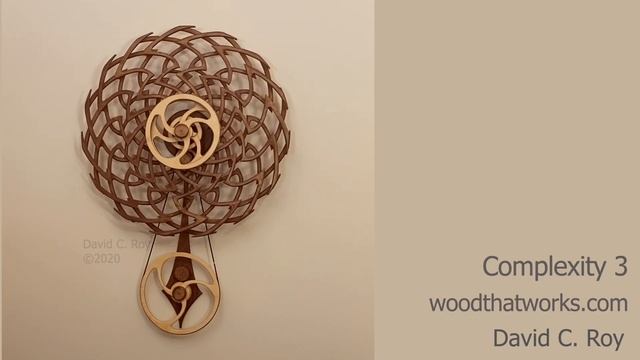 For more info visit https://www.woodthatworks.com/kinetic-sculptures/Complexity-3 (copyright 2021 David C. Roy)