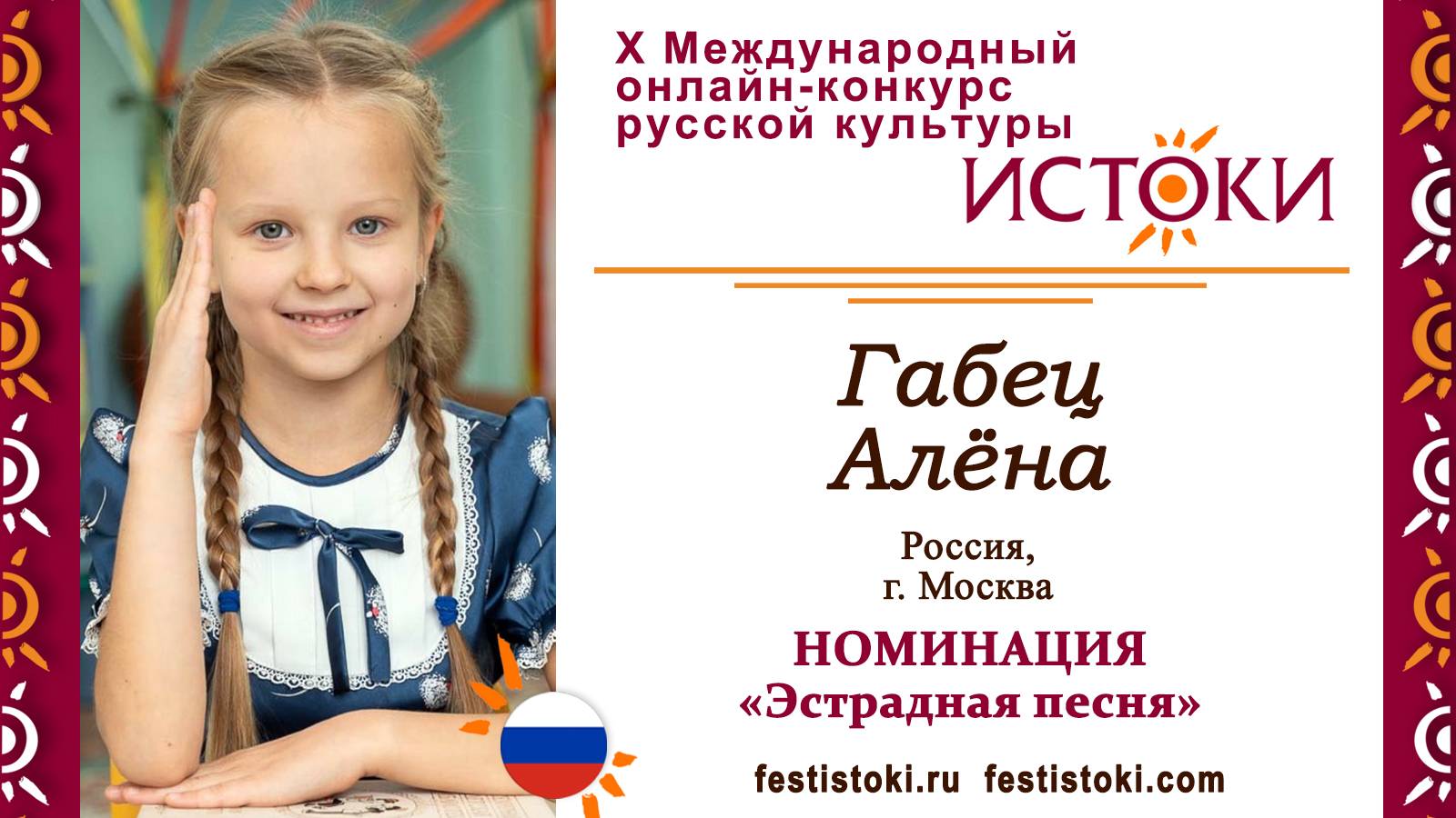 Участник Х Международного онлайн-конкурса русской культуры "Истоки". Номинация "Эстрадная песня". Песня "Песня летит". Авторы Ольга Дворянцева, Валерий Неткачев. Сайт: festistoki.ru / festistoki.com E-mail: festistoki@mail.ru