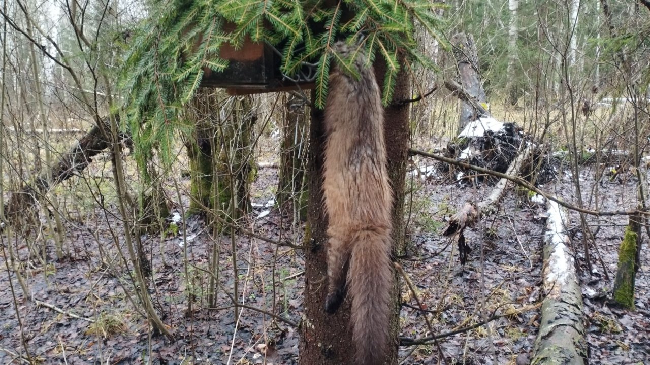 Проверил капканы на куницу Есть куница