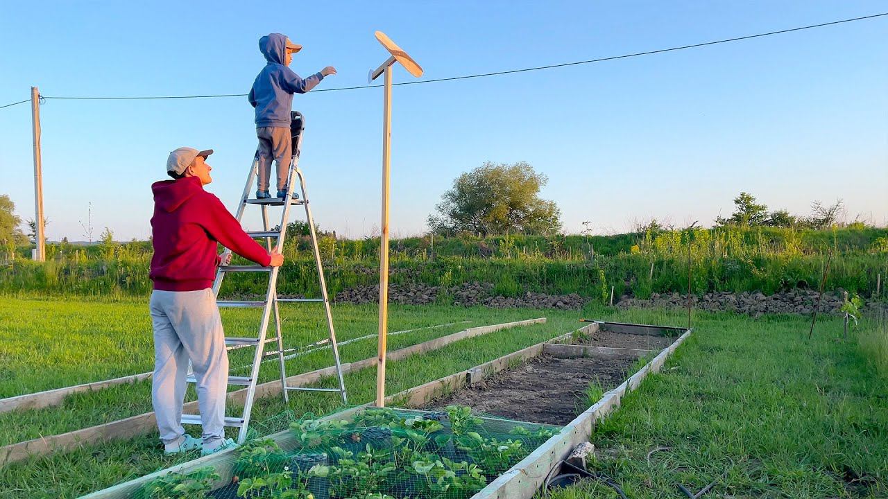Кроты атаковали мой новый огород, ветер поломал деревья, делаю вертушку от кротов, посадил арбузы