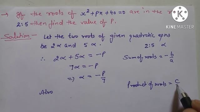 If the roots of x^2 + px + 40 = 0 are in the ratio 2 : 5 then find the value of p. IMO 💡