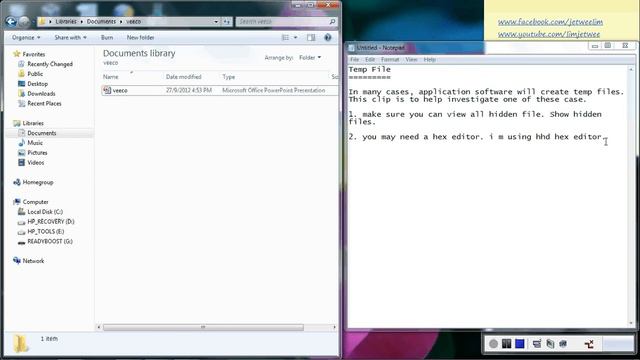 Temporary file investigation using hhd hex editor