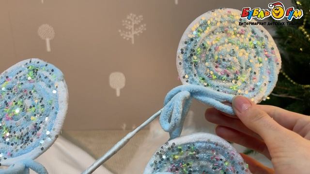 333070 Украшение декоративное Ветка-безе с блестками голубая 50см