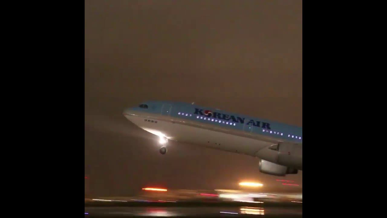 Эффектный ночной взлёт Airbus A330 Korean Air