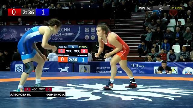 ЧР по вольной борьбе среди женщин. Алборова Ю.(МОС) и Фоменко А.(МОС) - 1/4 финала, 62кг