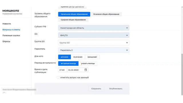 Управление контентом «Вопрос ответ» в роли администратора в «Базовой подсистеме»