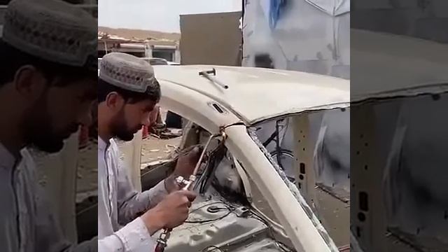 Эта куча металла после работы этих работяг станет небитой и некрашеной. Колоссальная работа проделана...
