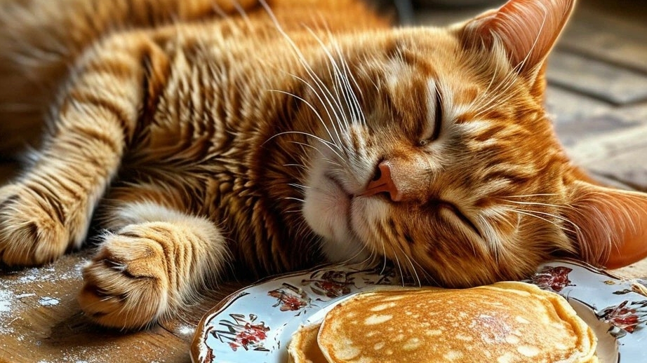 Кот наелся блинов, поспал, потянулся и стал танцевать