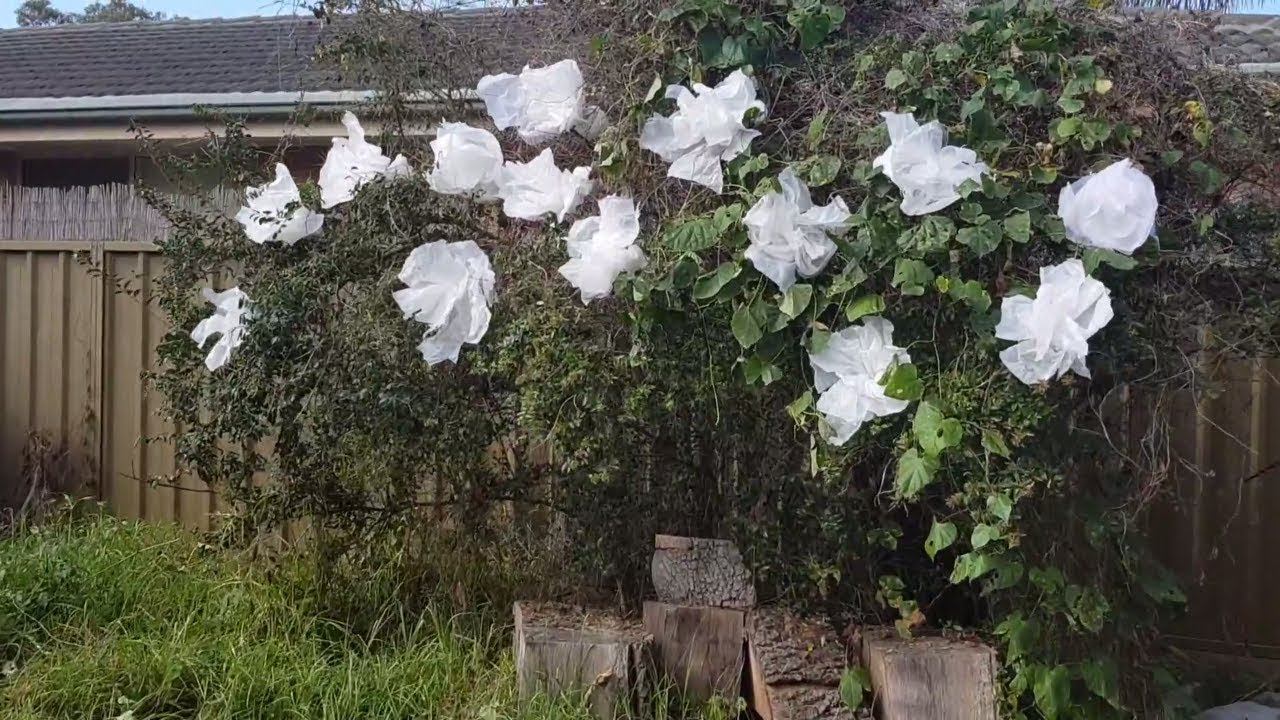Куст расцветет, когда Вы его нарядите пластиковыми кульками!