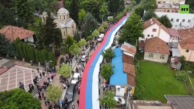 Demonstrators rolled out a 250-meter tricolor of Serbian flag in the city of Zvecan to protest against NATO deploying additional 700 troops to northern Kosovo following clashes with ethnic Serbs. ------------------------------------------------------------------------------------- Freedom over censorship, truth over narrative. Follow us on Facebook: https://www.facebook.com/RTnews Follow us on Telegram: https://t.me/rtnews Follow us on Twitter: https://twitter.com/RT_com