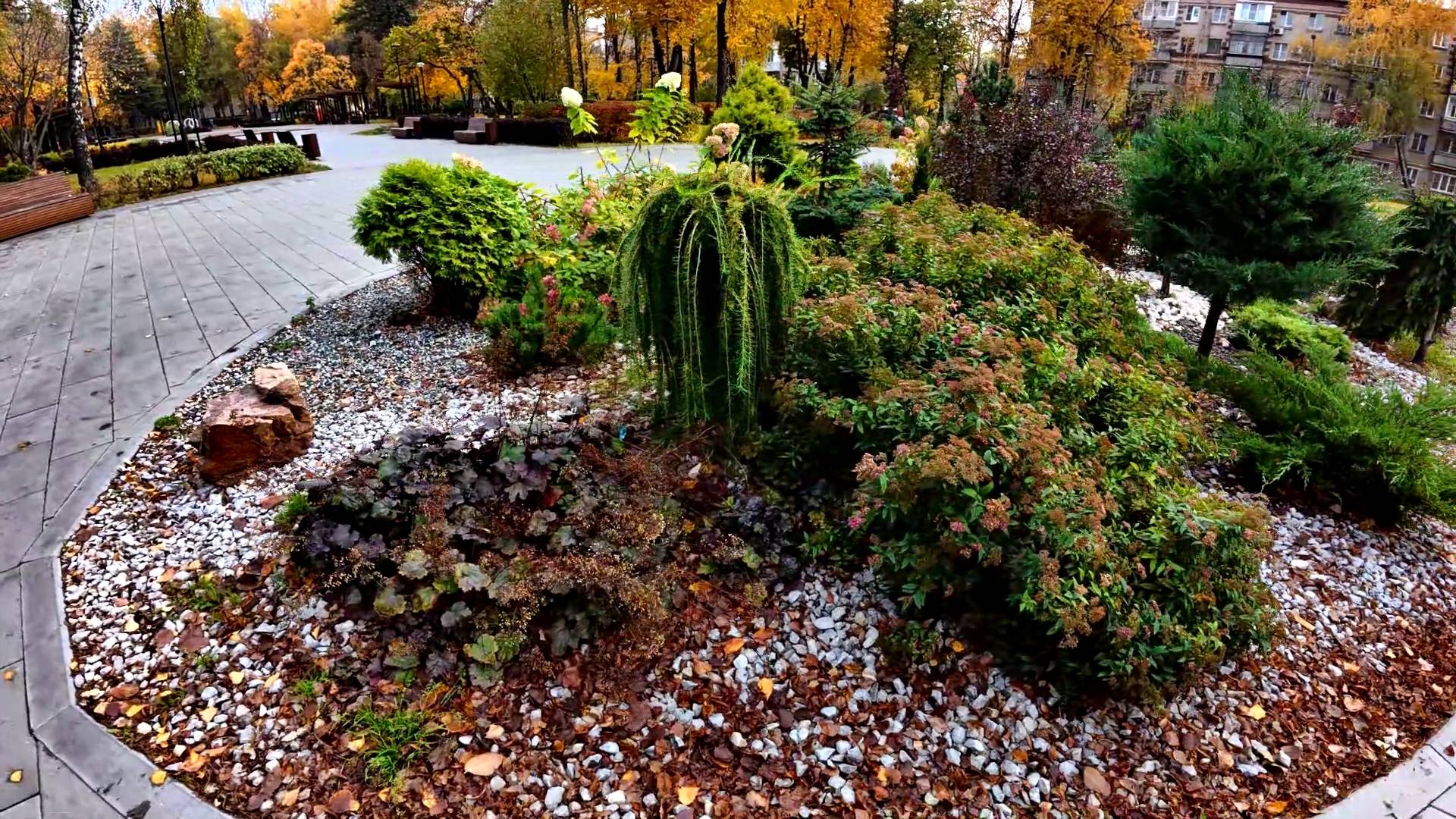 Ландшафтный дизайн клумбы в сквере. ГОРТЕНЗИИ ОТЦВЕТАЮТ.