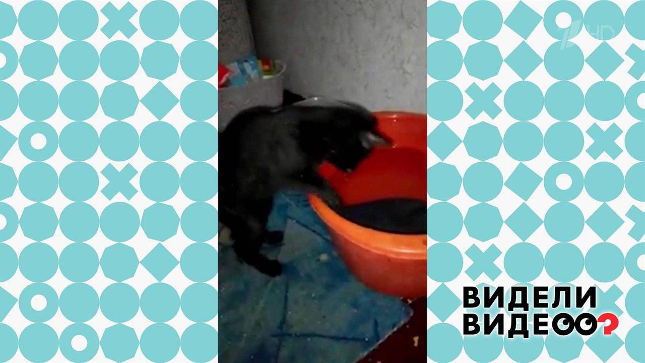 Котенок-полоскун. Видели видео? Фрагмент выпуска от 09.02.2020