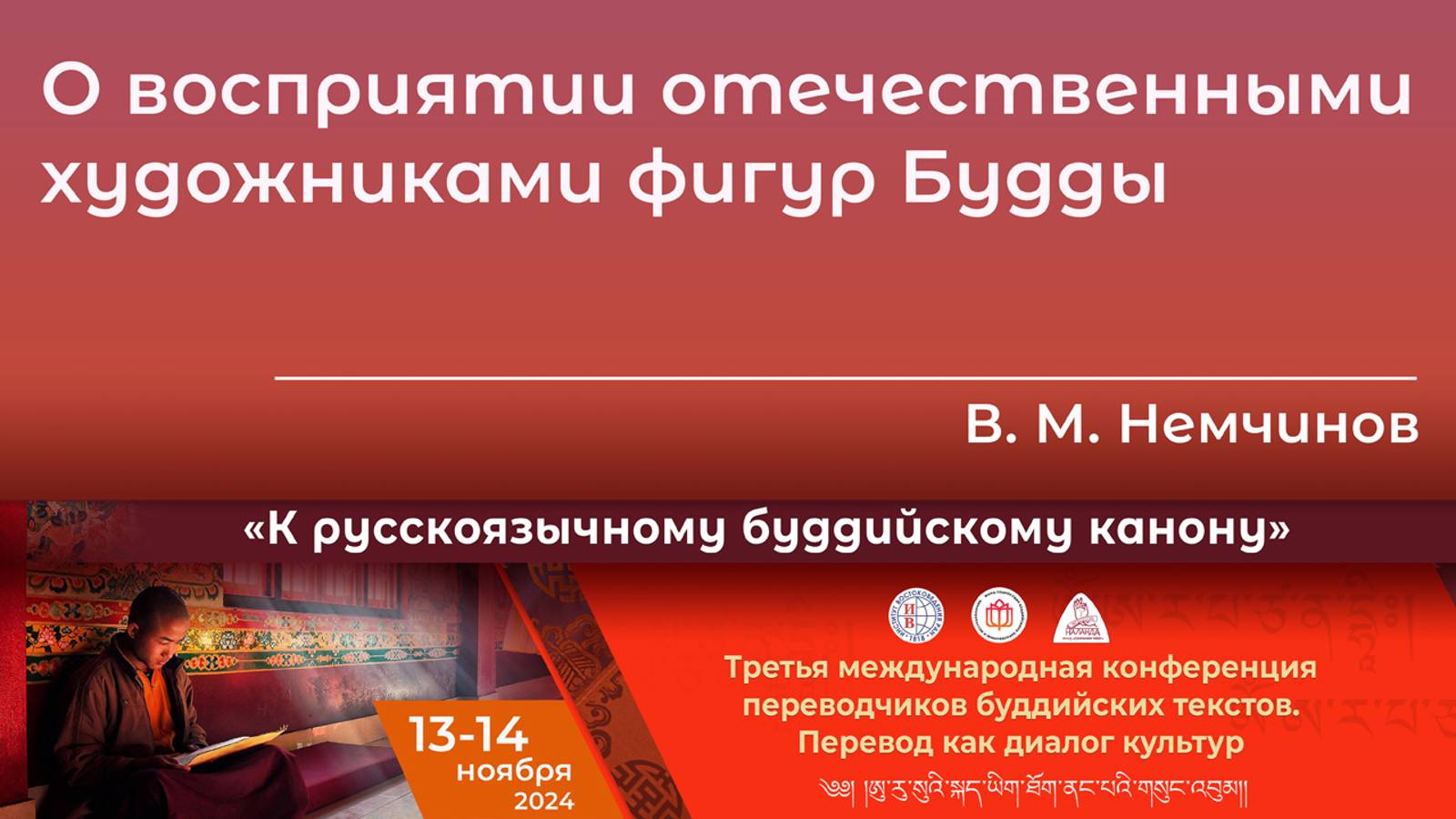 Виктор Михайлович Немчинов. ИВ РАН, Москва, Россия. «О восприятии отечественными художниками фигур Будды». Выступление на Третьей международной конференции «К русскоязычному буддийскому канону. Перевод текста как диалог культур». Конференция состоялась 13–14 ноября 2024 г. в Институте востоковедения РАН при поддержке фонда содействия сохранению культурных и философских традиций тибетского буддизма «Сохраним Тибет». Видео: Роман Сухоставский Фонд "Сохраним Тибет" 2024 г.