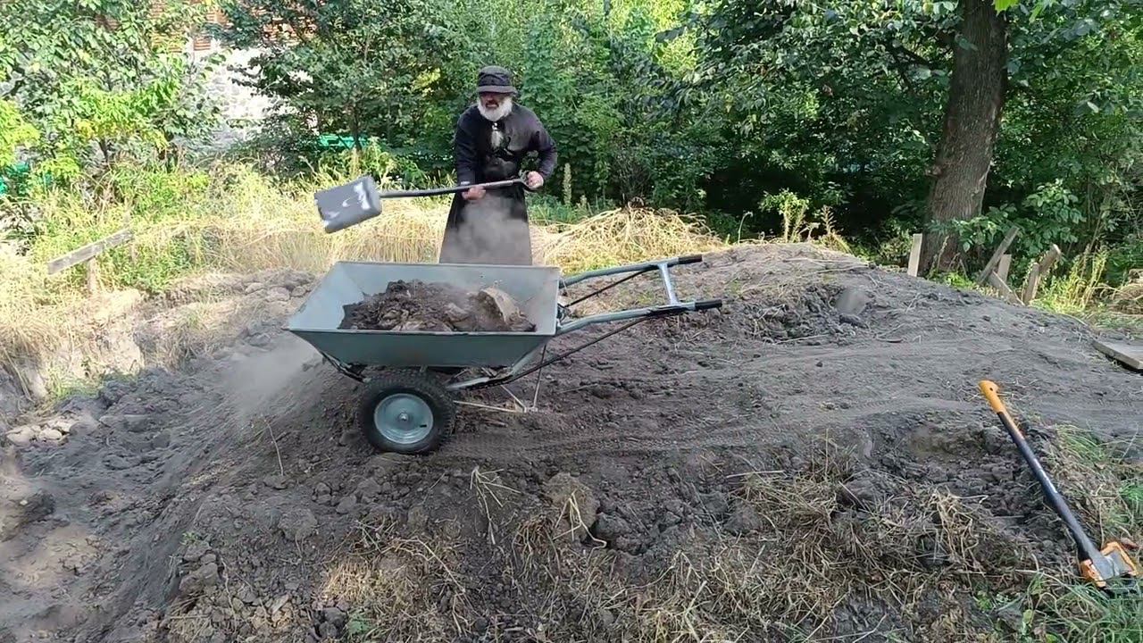 Отец Пахомий подготавливает место под фундамент.Томашовка.Монастырь.14.09.2023