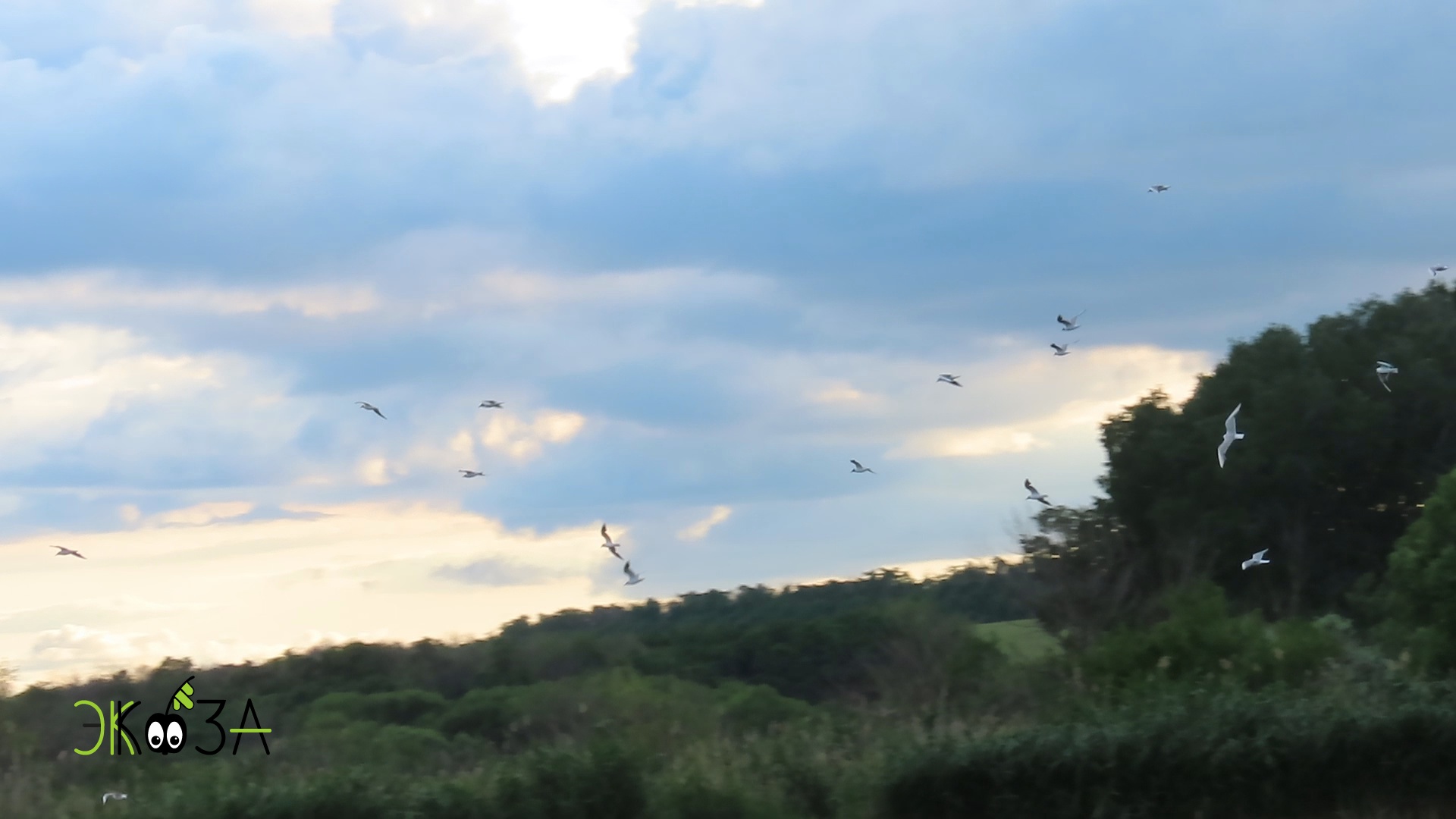 Озёрные чайки летают на закате
