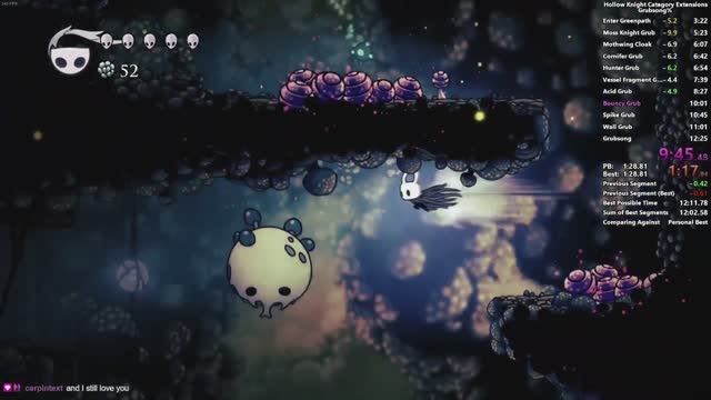 Hollow Knight - Grubsong% in 12m 16s by Vexsance - 1st place. (Vexsance - youtube)