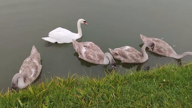 Красивые лебеди на озере. Поездка на выходные в Подмосковье.