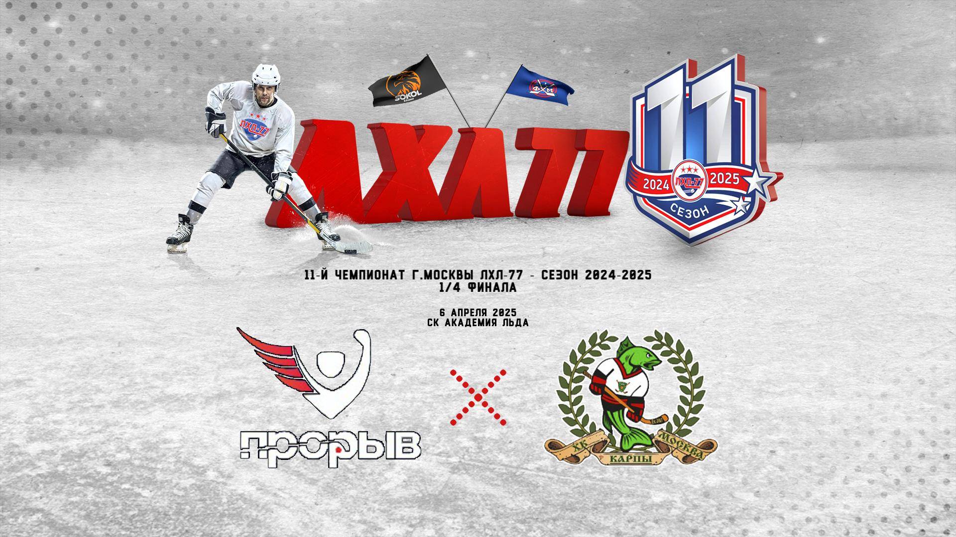 11-й ЧЕМПИОНАТ г.МОСКВЫ ЛХЛ-77 1/4 финала СТАРТАП 06/04/2025 Вс 21:45 Академия льда