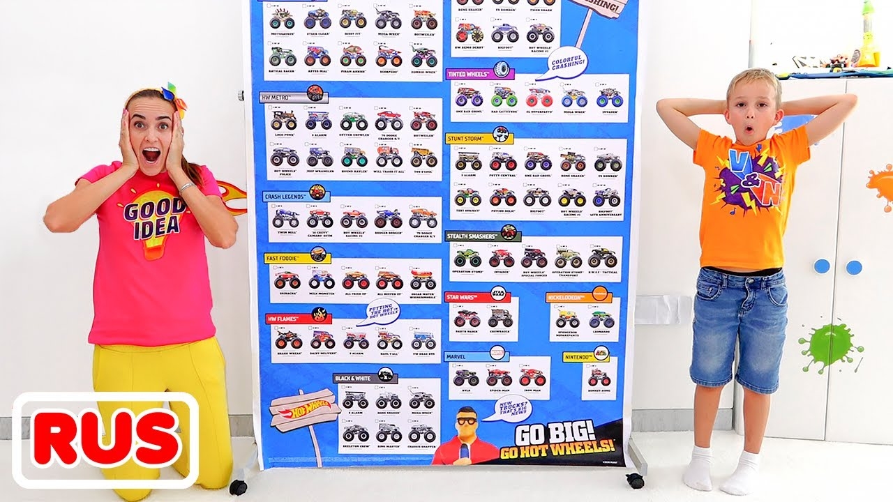 Дети собирают коллекцию игрушечных машинок | Hot Wheels Monster Trucks! Видео от Влада и Ники!