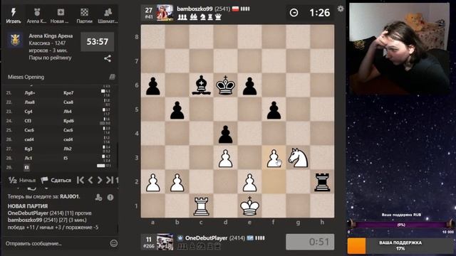 Друзья, всем привет. Продолжаю сражения дебютом Эльшада. Arena Kings на Chess.com. Шахматы. Блиц 3+0. Если интересно, - подписывайтесь на канал, ставьте лайки, оставляйте комментарии. Поддержка/Спасибо через: DonationAlerts: https://www.donationalerts.com/r/onedebutplayer Бусти: https://boosty.to/onedebutplayer/donate Donatepay: https://new.donatepay.ru/@1272445 Стрим на Бусти: https://boosty.to/onedebutplayer/streams/video_stream