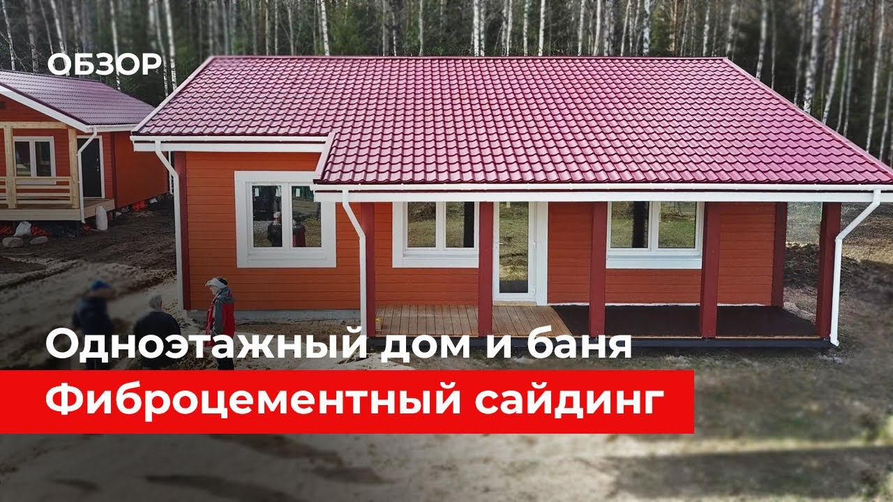 Обзор одноэтажного каркасного дома и бани с отделкой фиброцементным сайдингом Cedral