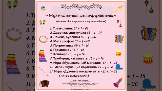 Арина Чугайкина Музыкальные инструменты - авторские песенки для слушания и музицирования