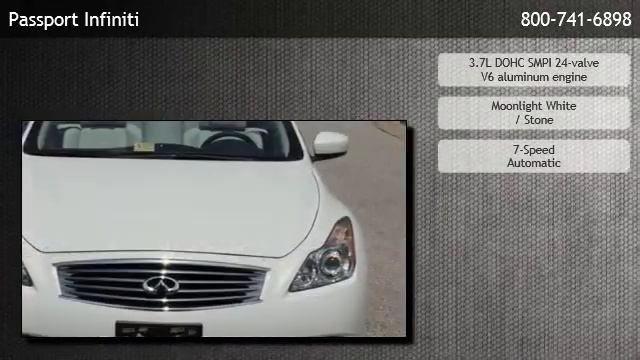 For our most current price click here: http://www.usedautosindc.com/Used-2009-Infiniti-G37-For-Sale/VehicleDetails.aspx?did=716&av=94fe85cc-6084-4ff9-af19-08bc6f39a600&ips_ls=4 Passport Infiniti is offering a 2009 Infiniti G37 Hard Top Convertible / Nav / Bose Surround Convert in Alexandria, VA. Stock Number: P3331 Engine: 3.7L DOHC SMPI 24-valve V6 aluminum engine Transmission: 7-Speed Automatic Exterior Color: Moonlight White Interior Color: Stone Mileage: 32785 7-speed automatic, 3.7l dohc smpi 24-valve v6 aluminum engine, rear wheel drive, bucket seats, cruise control, heated front seat(s), leather seats, power driver seat, power passenger seat, rear bench seat, convertible hardtop, heated mirrors, a/c, adjustable steering wheel, climate control, engine immobilizer, gasoline fuel, multi-zone a/c, power door locks, power steering, power windows, traction control, driver air bag, front head air bag, front side air bag, passenger air bag, passenger air bag sensor, rear head air bag, Passport Infiniti 150 S. Pickett Street Alexandria,VA 22304 http://www.usedautosindc.com http://www.usedautosindc.com/Used-2009-Infiniti-G37-For-Sale/VehicleDetails.aspx?did=716&av=94fe85cc-6084-4ff9-af19-08bc6f39a600&ips_ls=4