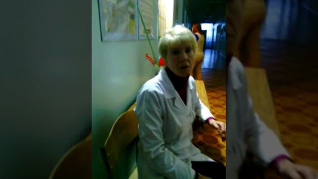 Полоумная медсестра кидается на камеру, чтобы выбить из рук телефон. В коридоре с видеокамерами напоготове "дежурят" подельницы, очевидно ждут потасовку.