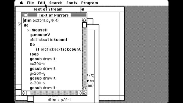 This video both shows the new features of System 2 (Mini Finder and Shutdown) and a demonstration of Mac Basic 1.0. I walk through the demo programs that come with Mac Basic 1.0. I suspect these not to be the original ones, or these are modified, because some commands like erase do not work properly. To my best knowledge, this version of Basic was never released commercially due to pressure from Microsoft (this is also suggested by the About menu).
