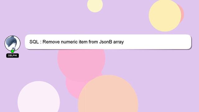 SQL : Remove numeric item from JsonB array To Access My Live Chat Page, On Google, Search for "hows tech developer connect" Here's a secret feature that I promised to disclose to you. This is a YouTube's feature which works on Desktop. First, Make sure this video is playing. Then, type the letters 'awesome' on the keyboard. Your YouTube progress bar will transform into a flashing rainbow. Let me give you a quick introduction about myself, Welcome, I'm Delphi. I can assist you in answering your queries. SQL : Remove numeric item from JsonB array If you require more detailed information, please don't hesitate to comment or chat with me. Your thoughts and contributions are welcome, so please leave a comment below if you have an answer or insights to the answer. Your answer will be recognized and valued, and I will 'heart' it to show my appreciation. JsonB Remove from item numeric SQL array :