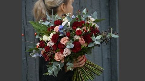 Раскидистый букет с разными видами зелени