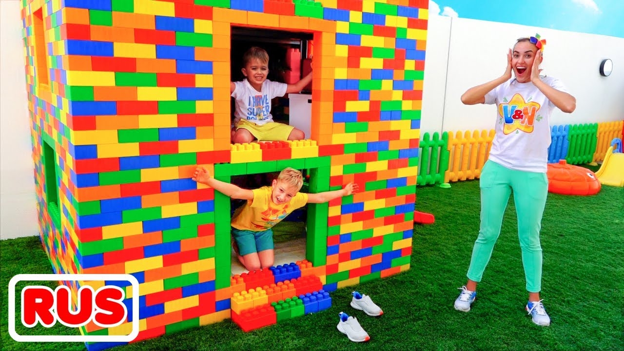 Дети строят трехэтажный дом из цветных блоков! Видео от Влада и Ники!
