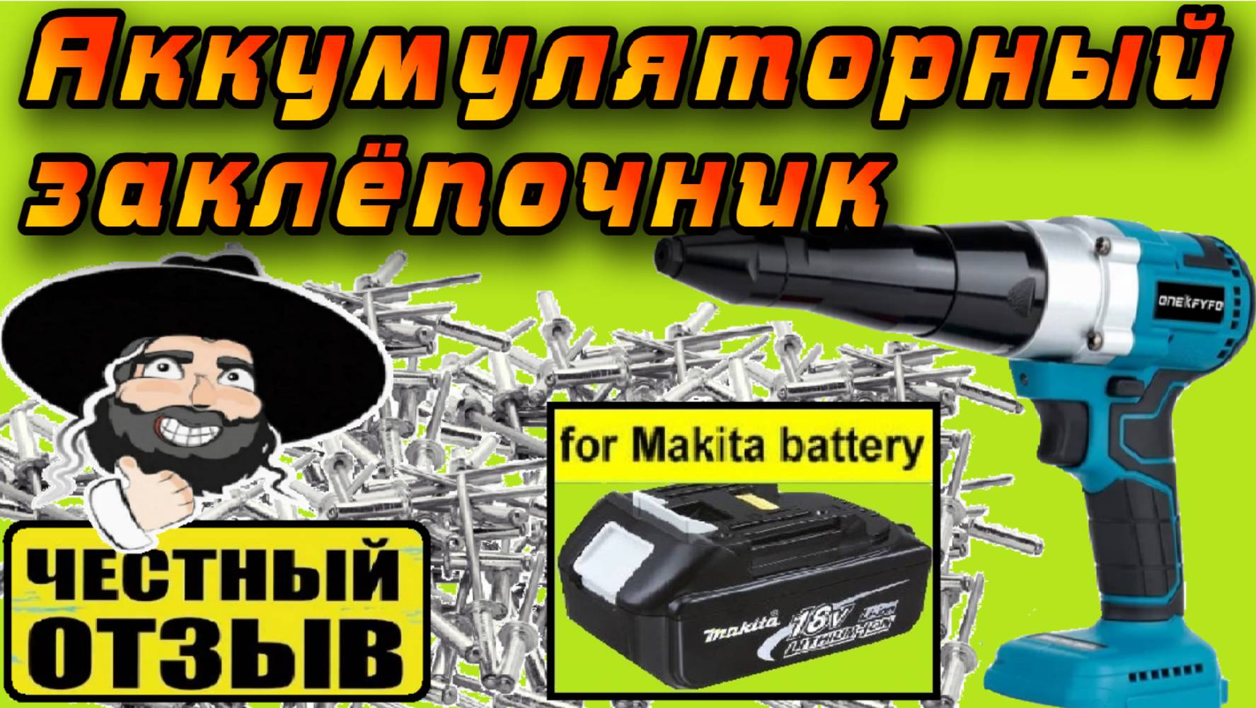 Обзор бесщёточного заклёпочного пистолета ONEKFYFD под аккумуляторы Makita 18v с Aliexpress