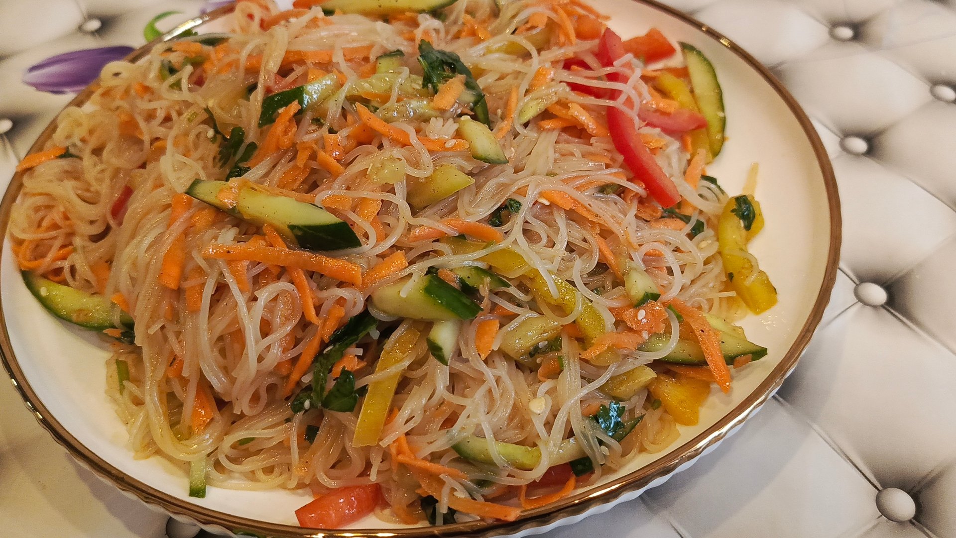 Салат из фунчозы и овощей — прекрасное блюдо, которое не отнимает много времени на приготовление👍💯