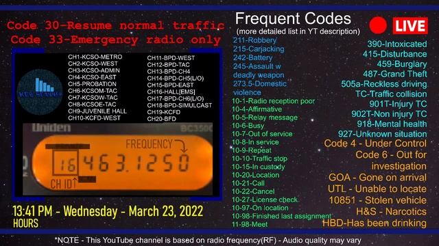 Companion stream for watching local stringers Daily reset for re-viewing purposes Frequency List - https://tinyurl.com/KCBfreq Police Codes PDF - https://tinyurl.com/KCBcodes Scanner Model - Bearcat 350C https://tinyurl.com/KCB350 Antenna - HG Scanner https://tinyurl.com/KCBHGantenna Budget Scanner - Baofeng UV5R https://tinyurl.com/KCBUV5 Budget Antenna - Nagoya NA-771 https://tinyurl.com/KCBNA771