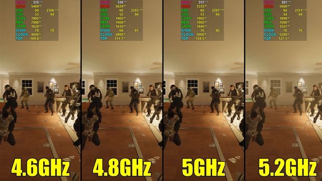 Rainbow Six Siege: i7 9700K [ 4.6GHz vs 4.8GHz vs 5GHz vs 5.2GHz ]