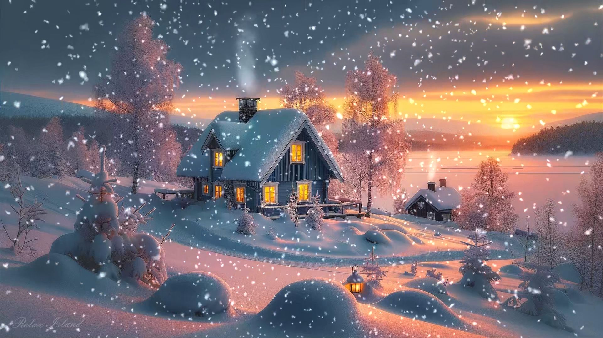 Просто невероятно красивая успокаивающая музыка для сна и восстановления нервной системы в домике во время снегопада! Чарующая зимняя расслабляющая музыка для души на закате дня в уютном деревянном доме на холме у замерзшей реки! Редкие деревья вокруг дома покрылись инеем, в домике горят огни на окнах и идёт дым из трубы, всё вокруг покрыто густым снегом, в дали за горизонтом опускается солнце, часть неба окрасилась в желтые тона, идёт снегопад и медленная музыка для медитации, создают идеальную атмосферу для релаксации. Снег падает медленно и густо, крупными мягкими хлопьями, и кажется, будто время тоже начинает идти тише. За окном всё становится белым и ровным, как чистая страница, на которой не осталось ни следов, ни тревожных мыслей. Редкие деревья вокруг домика стоят неподвижно, их ветви обтянуты инеем и тонким льдом, и при каждом порыве ветра они едва слышно звенят, словно где-то далеко звучат хрустальные колокольчики. Внутри дома тепло и спокойно. Деревянные стены хранят уютный аромат смолы и сухих дров, а мягкий свет из окон разливается золотистыми пятнами по снегу, делая вечер ещё более домашним. В камине или печи потрескивают поленья, и этот тихий живой звук смешивается с медленной музыкой для медитации, создавая ощущение полной защищённости. Дым из трубы поднимается ровной струйкой и растворяется в морозном воздухе — как последнее напряжение, уходящее из тела. Замёрзшая река внизу под холмом скрыта под снегом и льдом, и её течение теперь лишь угадывается — спокойное, невидимое, но продолжающееся. Над ней стелется лёгкая дымка холода, и всё вокруг кажется особенно чистым, ясным, словно зима аккуратно убрала лишнее и оставила только тишину и покой. На горизонте солнце медленно опускается за дальние линии леса. Жёлтые тона на краю неба становятся мягче, теплее, будто кто-то слегка подсветил зимний вечер изнутри. Этот свет отражается в снежных сугробах, и они начинают мерцать едва заметным сиянием. Снегопад не прекращается — он делает пейзаж ещё более сказочным, укрывая всё вокруг и приглушая любые звуки. Музыка звучит ровно и нежно, без резких нот, словно убаюкивает и ведёт за собой. Она помогает отпустить усталость, снять внутреннее напряжение, успокоить дыхание. С каждым медленным аккордом мысли становятся тише, а тело — тяжелее и расслабленнее. Всё, что тревожило днём, кажется далёким и неважным, будто осталось за пределами этого тёплого домика, где за окном кружится снег, а внутри горит свет. Можно просто устроиться поудобнее, укрыться пледом, почувствовать тепло в ладонях от чашки горячего напитка и смотреть, как снежинки танцуют в сумерках. И в этой картине — закат, иней, огни в окнах, тихий дым из трубы, замёрзшая река и медленная музыка — рождается идеальная атмосфера для релаксации, восстановления нервной системы и глубокого спокойного сна… При создании видеоролика была использована музыка: https://pixabay.com/ru/music/soothing-music-120090/ #МузыкаДляДуши #МузыкаДляСна #МузыкаДляМедитации #ЗвукиПрироды #Медитация #ЗвукиДляСна Видео оригинальное, было создано владельцем канала в 3D программах и аудиоредакторах. © Relax Island 2025. Все права защищены.