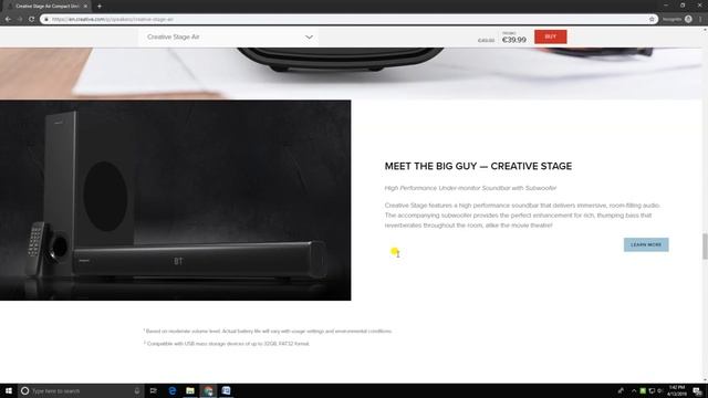 Please watch: "(39) How to get Disney Plus for free " https://www.youtube.com/watch?v=isk37WAcSoY --~-- Under-Monitor Soundbar For Computer Designed to fit perfectly under your computer monitor, the low-profile speaker is powered by USB that goes into your monitor with a built-in USB hub for a clutter-free desktop set-up Dual-Driver With Oversized Passive Radiator Hear crystal-clear highs and groove to the thumping bass at volumes belying its size! Stage Air houses dual custom-tuned drivers and oversized passive radiator that deliver impressive audio with big bass for immersive, near-field audio entertainment in the comfort of your room Wireless And Wired Connectivity With its dual connectivity mode, you can enjoy high quality Bluetooth wireless music or access wired connectivity via the 3.5mm AUX-in jack. It also doubles up as a standalone music player via a USB mass storage device without having to switch on the computer or other external inputs Fuss-Free Controls The controls are conveniently located at the side of the sound bar for easy reach and hassle-free control Portable With Up To 6 Hours Of Battery Life With a playtime of up to 6 hours, place Creative Stage Air anywhere around your house without connecting to a power source