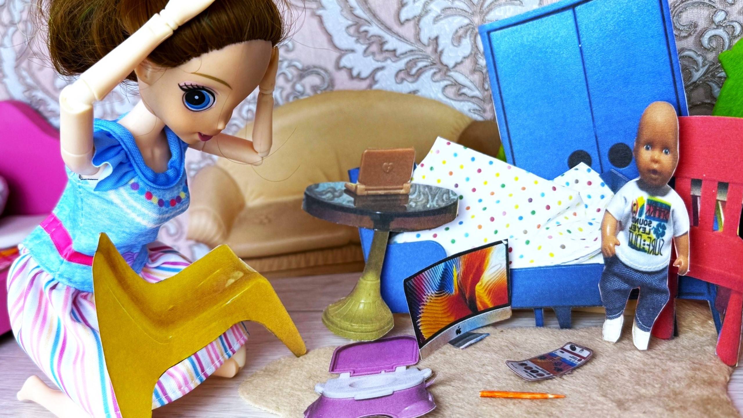 ВСЁ В ДОМЕ СТАЛО БУМАЖНЫМ😱 МАКС ТОЖЕ😲 Веселая семейка Катя и Макс куклы Барби истории ДаринелкаТВ