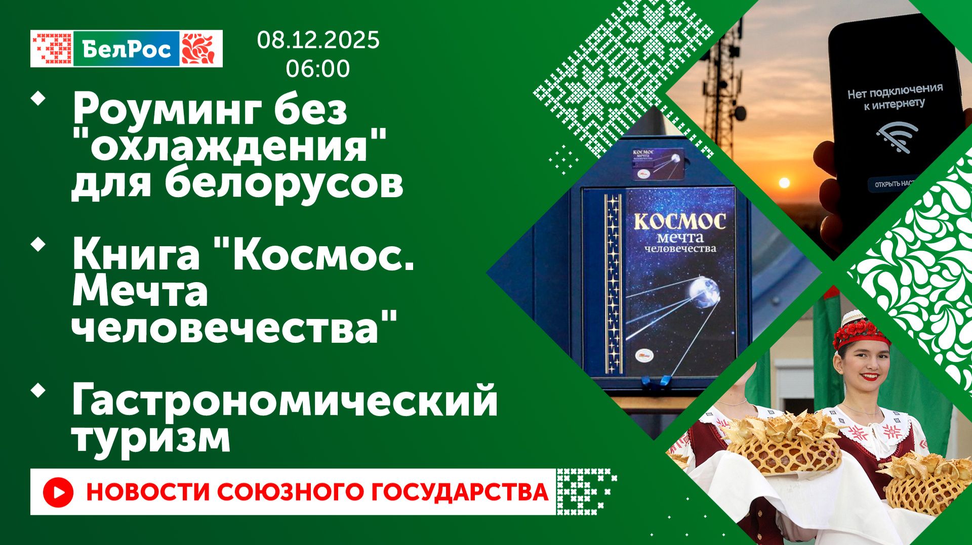 Роуминг без "охлаждения" для белорусов/ Книга "Космос. Мечта человечества"/ Гастрономический туризм